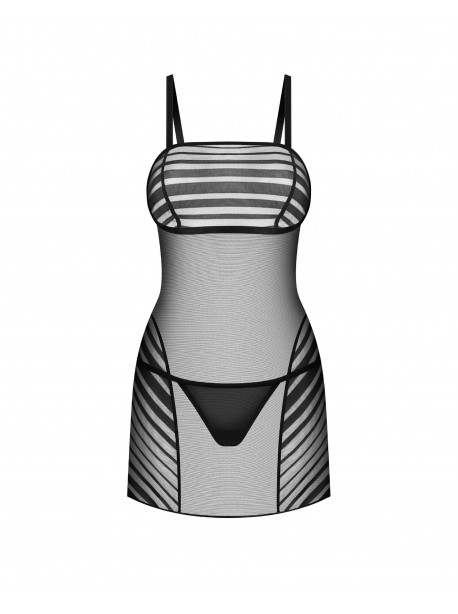 Lingerie de luxe qui met en valeur votre beauté naturelle. Cette nuisette mi-cuisse enveloppe votre corps dans un tissu transparent orné de rayures noires sur le buste, les hanches et les fesses. Bretelles larges et réglables pour un ajustement parfait. Fabriquées à partir des tissus les plus fins et les plus doux pour un confort ultime.